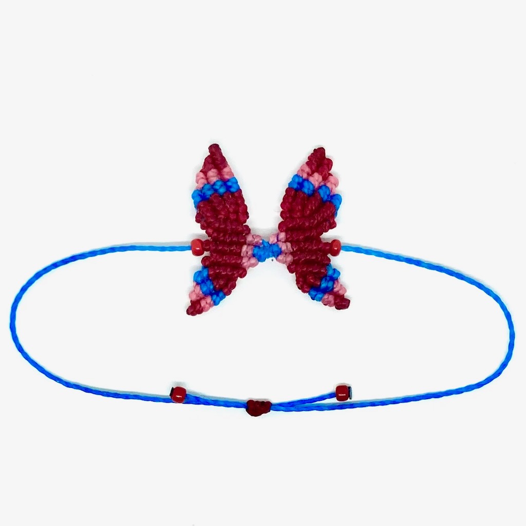 Makramé-armband i form av en fjäril. Knutna för hand av Tilde Belloni som också står för designen.